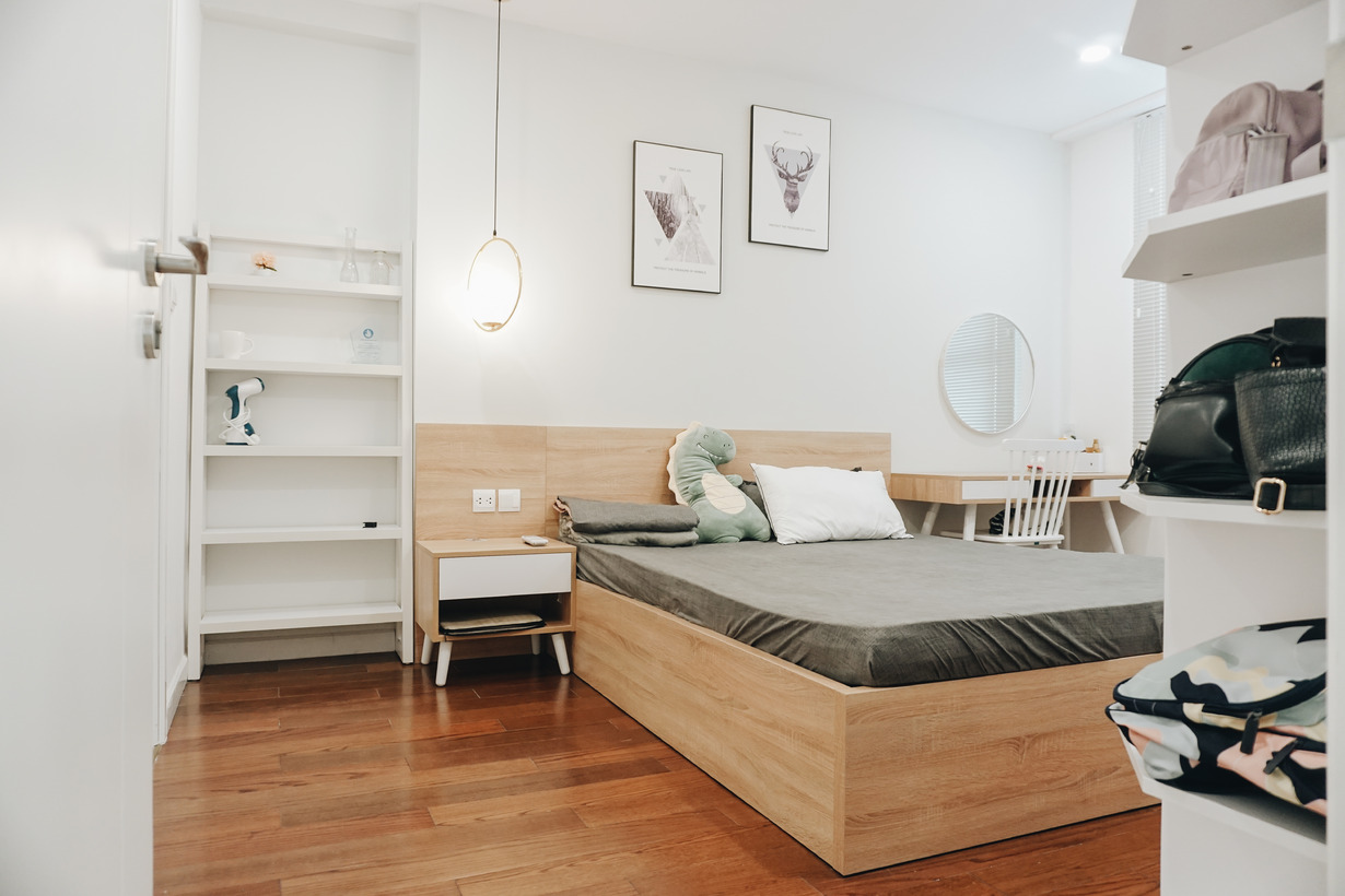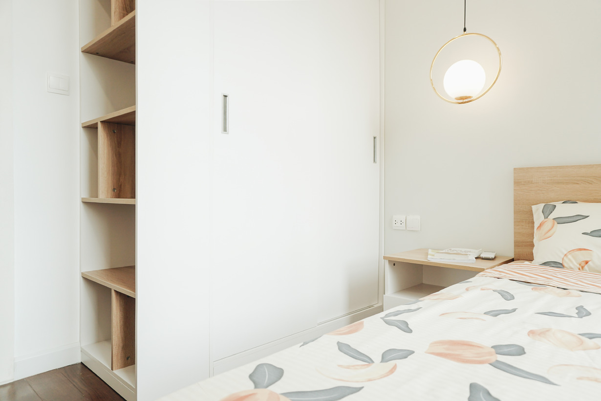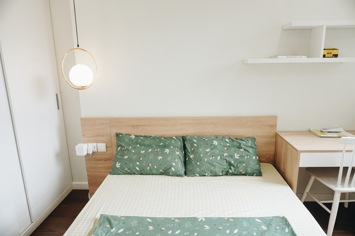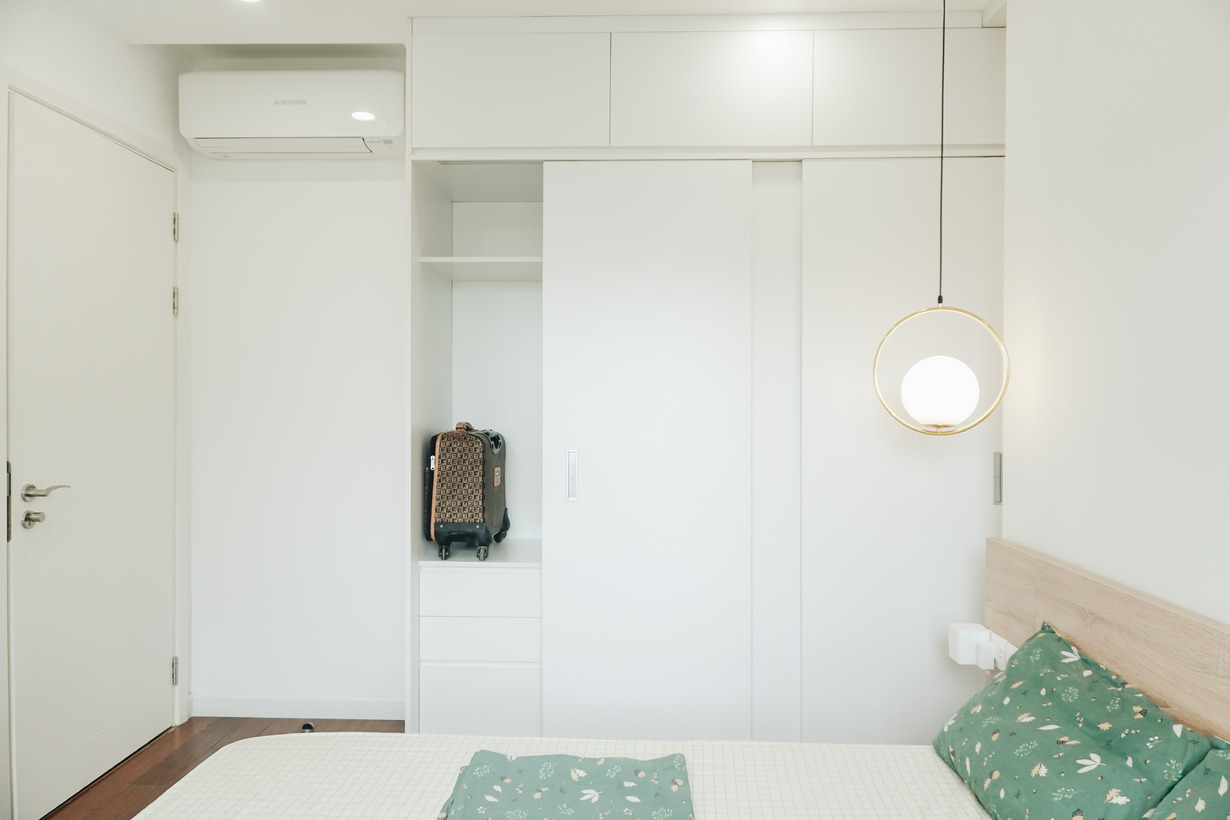 Có tới 3 phòng ngủ nhưng chủ nhà đã tạo phong cách riêng cho từng phòng. Một chút thay đổi trong vị trí đặt giường ngủ, tủ áo,.. tạo ra cảm nhận khác nhau về không gian. Cách lựa màu sắc cho từng bộ chăn ga gối... đều rất có gu.