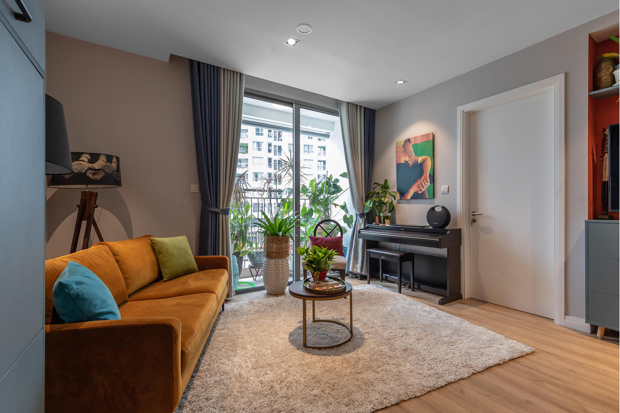 Căn hộ được gia chủ chăm chút đến từng góc nhỏ với những món đồ có màu sắc tươi sáng. Các vật dụng này sẽ làm mềm mại không gian có nội thất kích thước lớn, kiểu dáng đơn giản. Mỗi một chi tiết trong nhà đều trở thành điểm nhấn tạo nên sự thanh lịch.