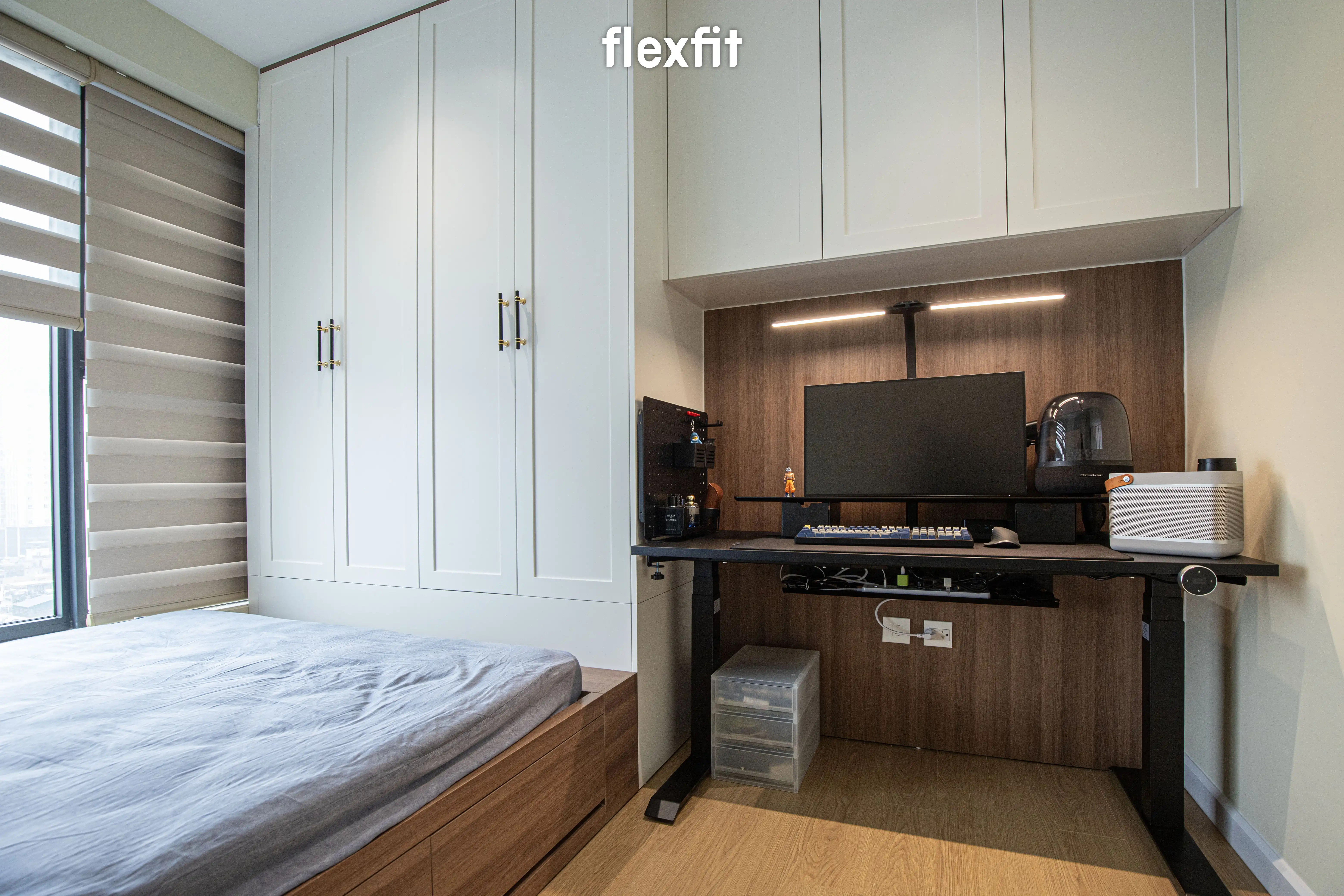 Không gian làm việc của Bố & Tương Lai Của Bơ Hiện tại là không gian làm việc tĩnh tại của Bố, nơi vun đắp nền tảng vững chắc cho gia đình. Nhưng từng đường nét nội thất đã được tính toán để sẵn sàng cho sự tiếp nối: một sự chuyển mình linh hoạt từ văn phòng tại gia trở thành thế giới riêng và góc học tập ươm mầm ước mơ khi Bơ lớn khôn.