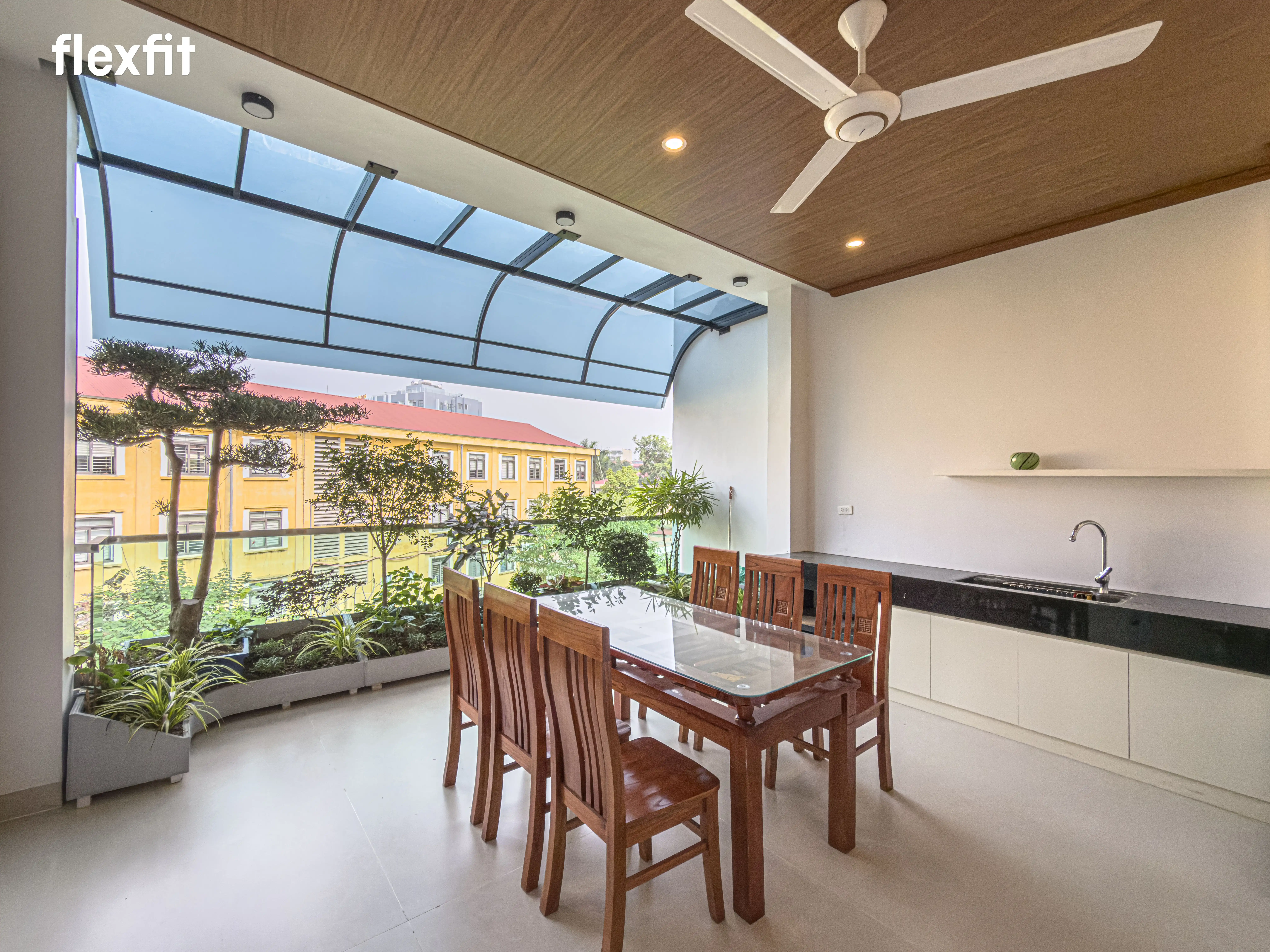 "Khoảng thở" đắt giá giữa phố thị. Lan can kính cường lực trong suốt mở da tằm nhìn khoáng đạt, xóa nhòa ranh giới trong - ngoài. Đây là góc "Chill" lý tưởng để gia chủ thưởng thức tách cafe sáng hay ngắm nhìn thành phố về đêm, biến ngôi nhà thành một resort tại gia đúng nghĩa.