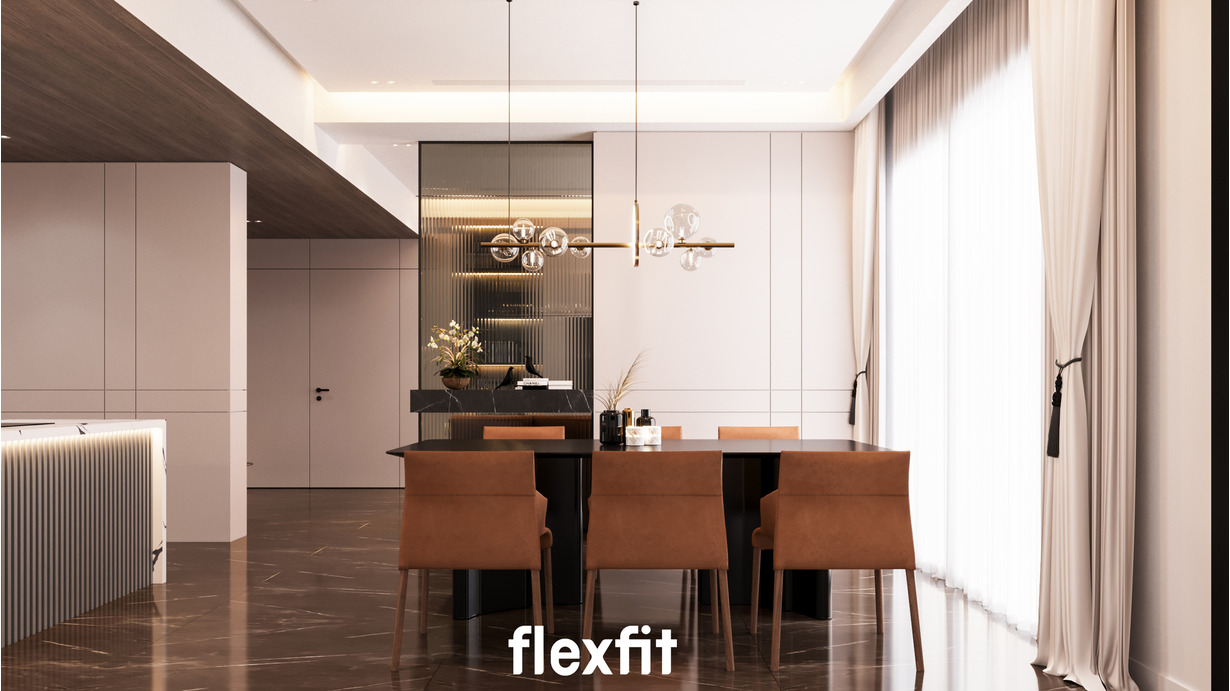 This design is a perfect example of Japandi style, focusing on sophistication, minimalism, and connection to nature, creating an elegant and tranquil living space.