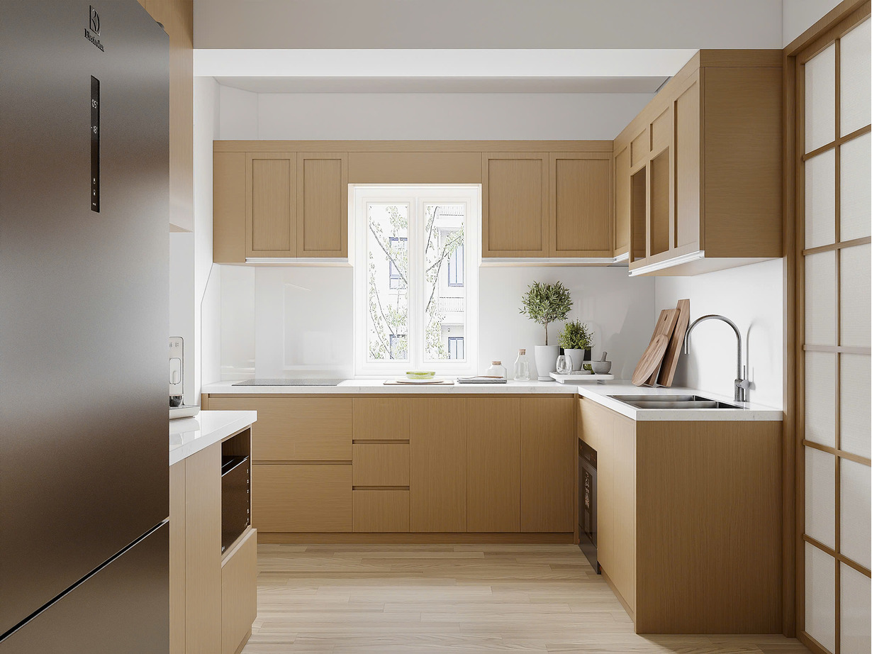 - Gỗ Tự Nhiên/Công nghiệp vân gỗ sáng: Nội thất phẳng, ít chi tiết, thể hiện sự tối giản.