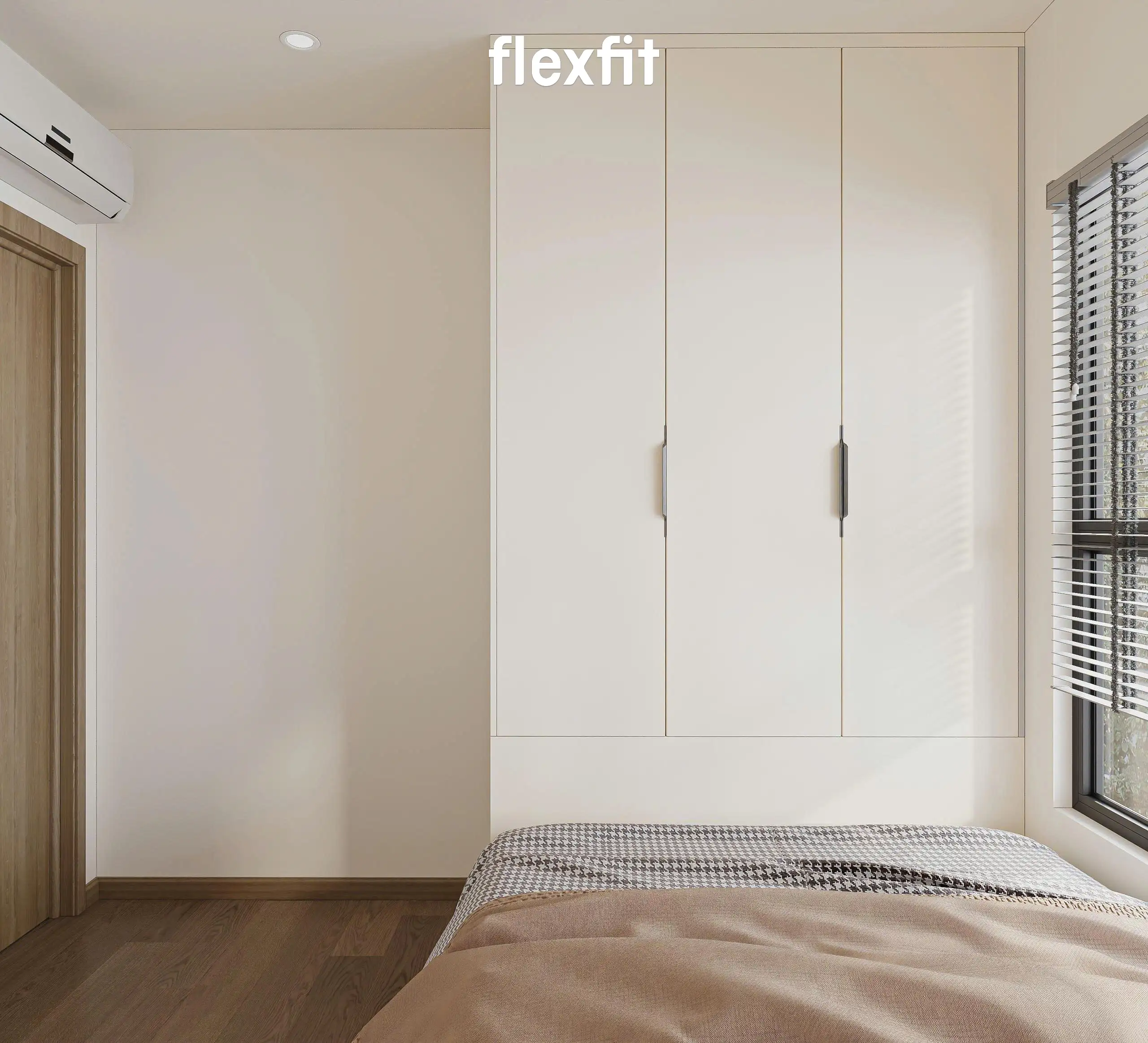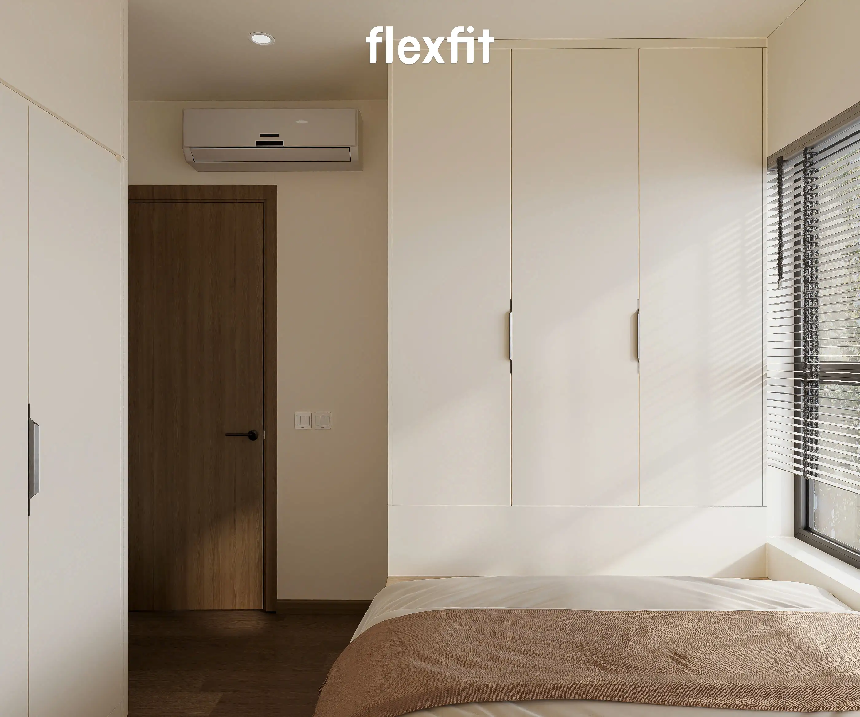 Lưu trữ: Dùng hệ tủ modun âm tường kịch trần với cánh soi âm (không tay nắm) để tối ưu hóa không gian lưu trữ một cách gọn gàng, liền mạch