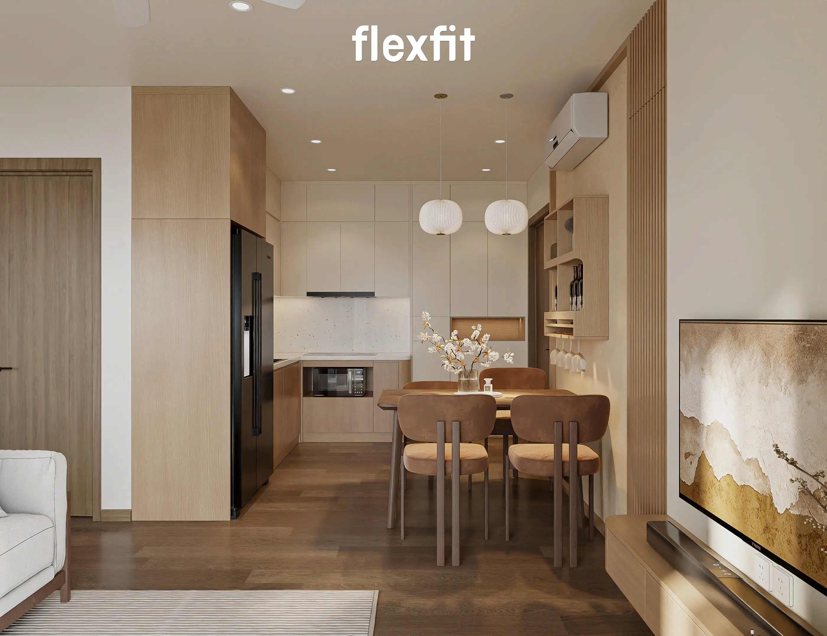 Thiết kế tập trung vào sự kết hợp giữa tinh thần Japandi (tối giản, gọn gàng) và Wabi-Sabi (thô mộc, ấm áp) để tạo nên một không gian sống độc đáo và thư thái.