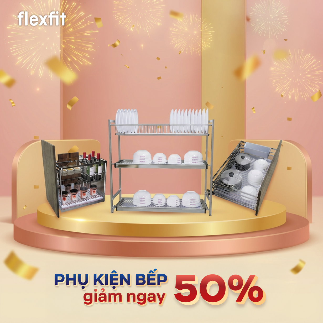 Chương trình ưu đãi đặc biệt mang đến mức giảm 50% khi mua giá bát, kệ dao thớt, kệ xong nồi,.. giúp khách hàng dễ dàng sở hữu không gian bếp tiện nghi và tinh gọn hơn bao giờ hết.