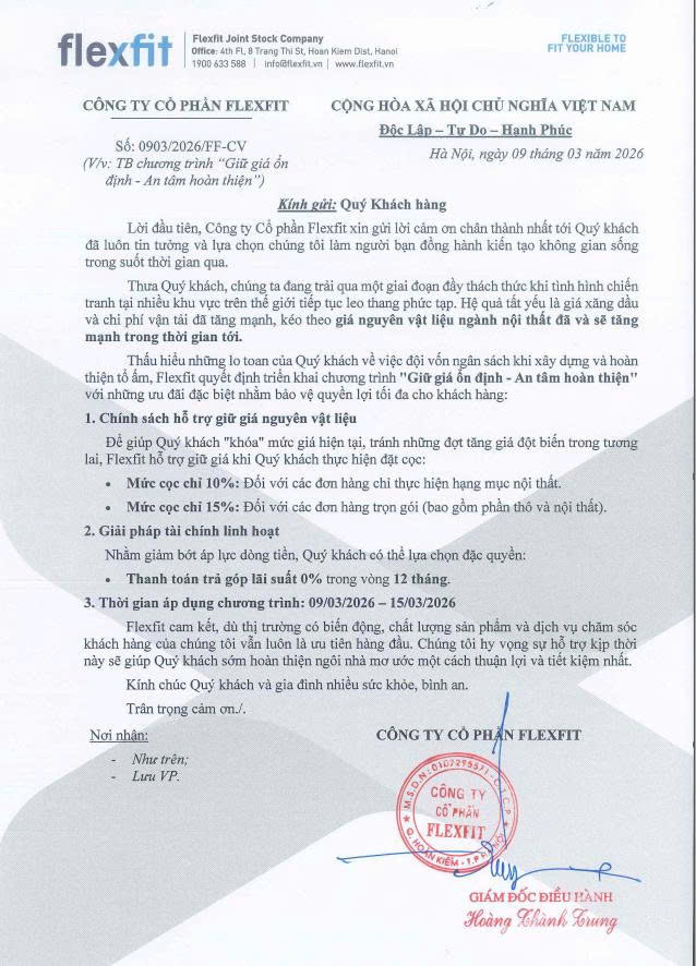 THÔNG BÁO TRIỂN KHAI CHÍNH SÁCH: "GIỮ GIÁ BÌNH ỔN - AN TÂM HOÀN THIỆN"